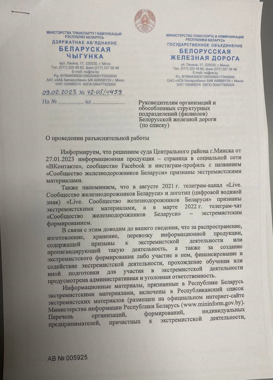 В который уже раз доводят информацию о признанных экстремистскими интернет-ресурсах, социальных сетях и каналах. В качестве альтернативы предлагается навязывать трудящимся мнения, публикуемые и озвучиваемые в провластных источниках информации. И, конечно, их перечень прилагается.